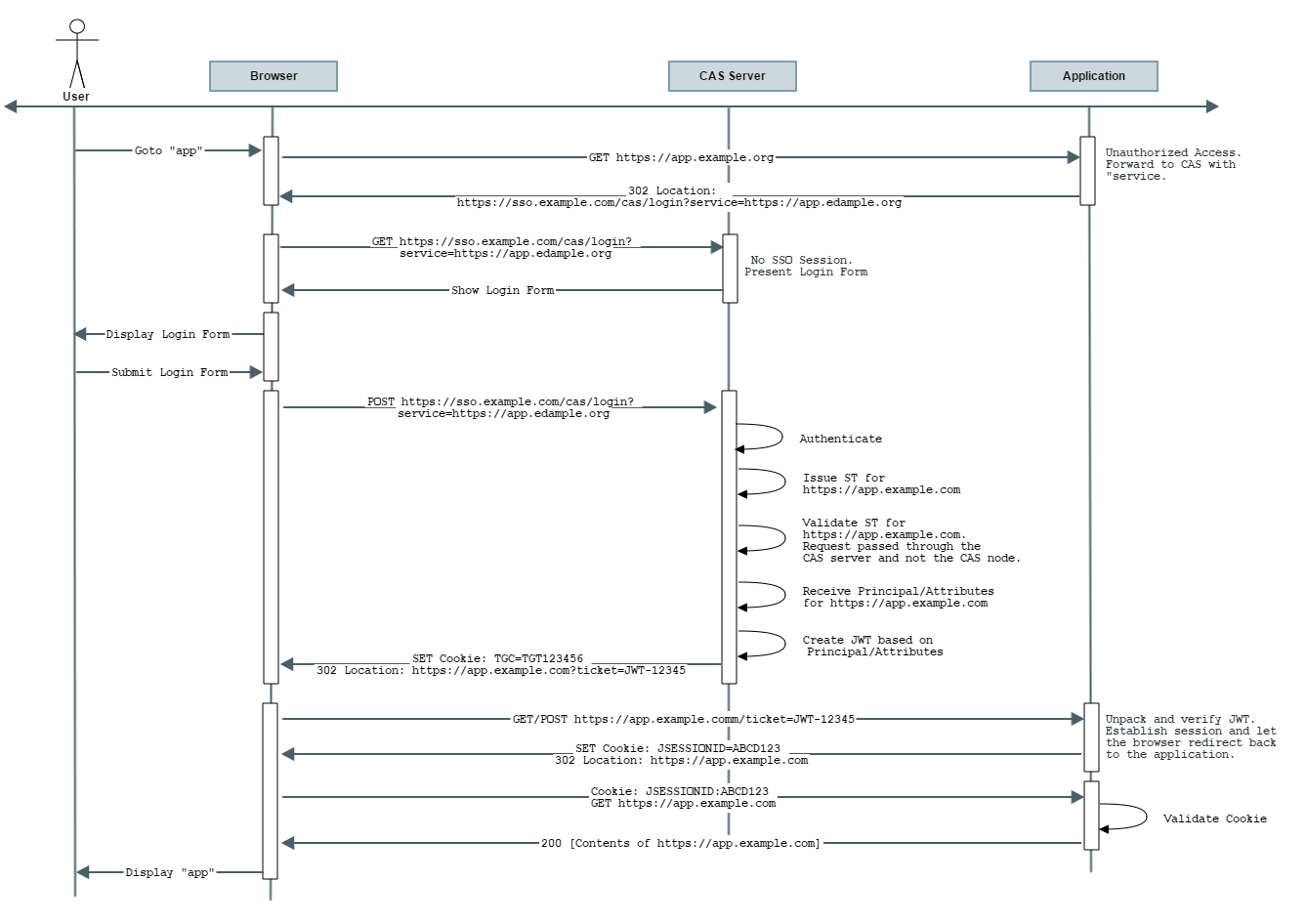 JWT-based service tickets are issued to application based on the same semantics defined by the CAS Protocol.
